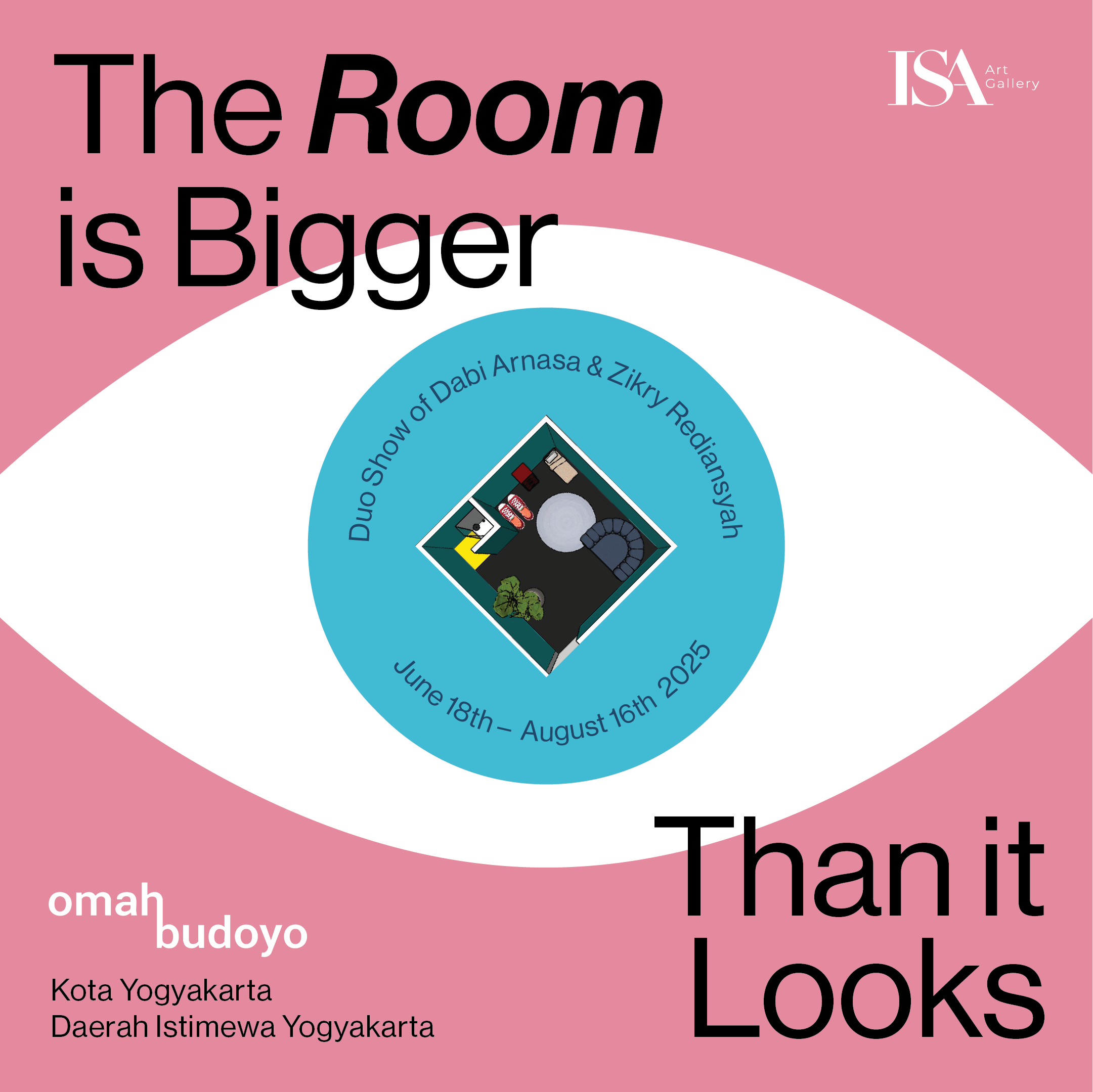 Pameran The Room is Bigger Than It Looks menggali ketegangan dalam zaman Antroposen—era di mana manusia secara drastis mengubah sistem Bumi. Dengan mengacu pada gagasan Donna Haraway, pameran ini tidak menawarkan solusi utopis, melainkan mengajak kita untuk “tinggal dalam keruwetan”: menerima ketidakpastian, kontaminasi, dan ketergantungan sebagai bagian dari hidup. Praktik artistik Dabi Arnasa dan Zikry Rediansyah berpijak pada ambiguitas dan keseharian yang tampak remeh namun penuh makna.
